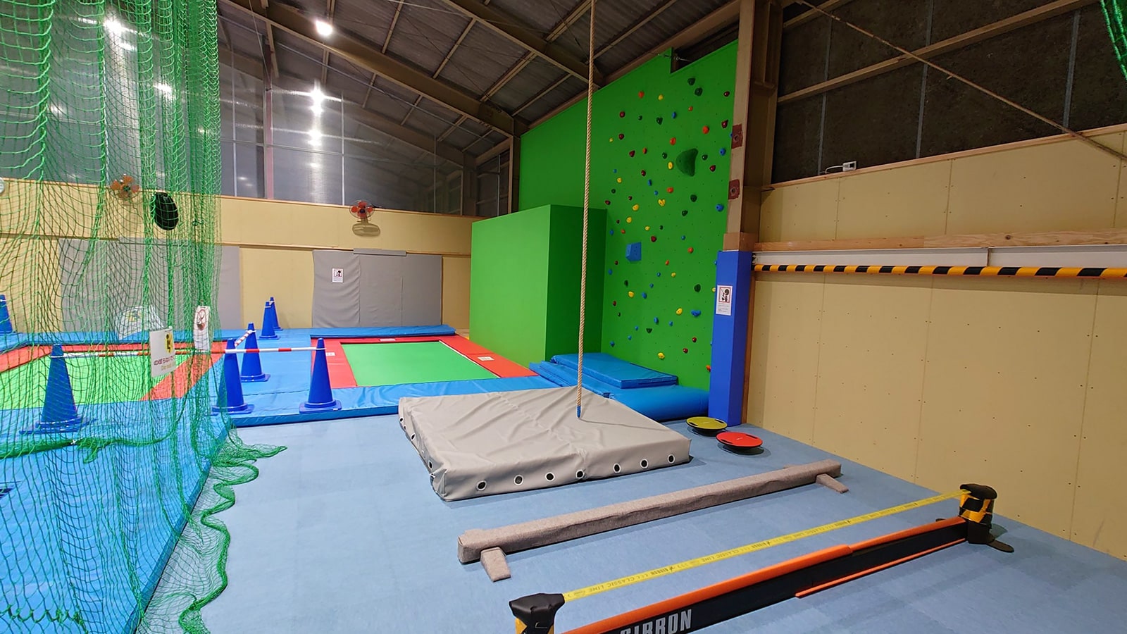 当施設では、日本体操協会認定工場で製造された競技用トランポリンを中心に、初心者から上級者まで楽しめる多彩な設備を取り揃えています。