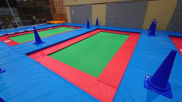 - 10メートルのタンブリングトランポリンにピットがついているので、連続技の練習に最適です。